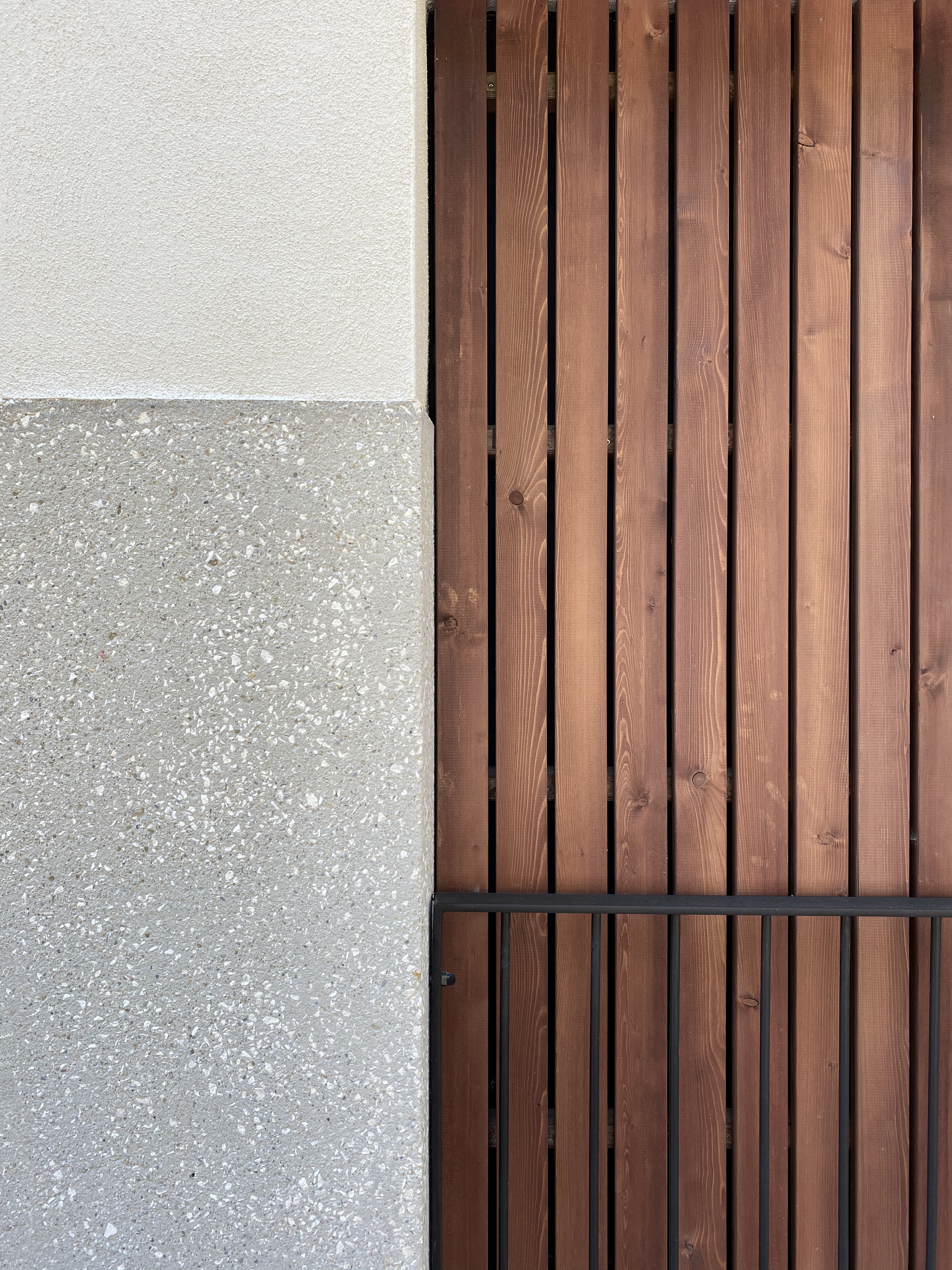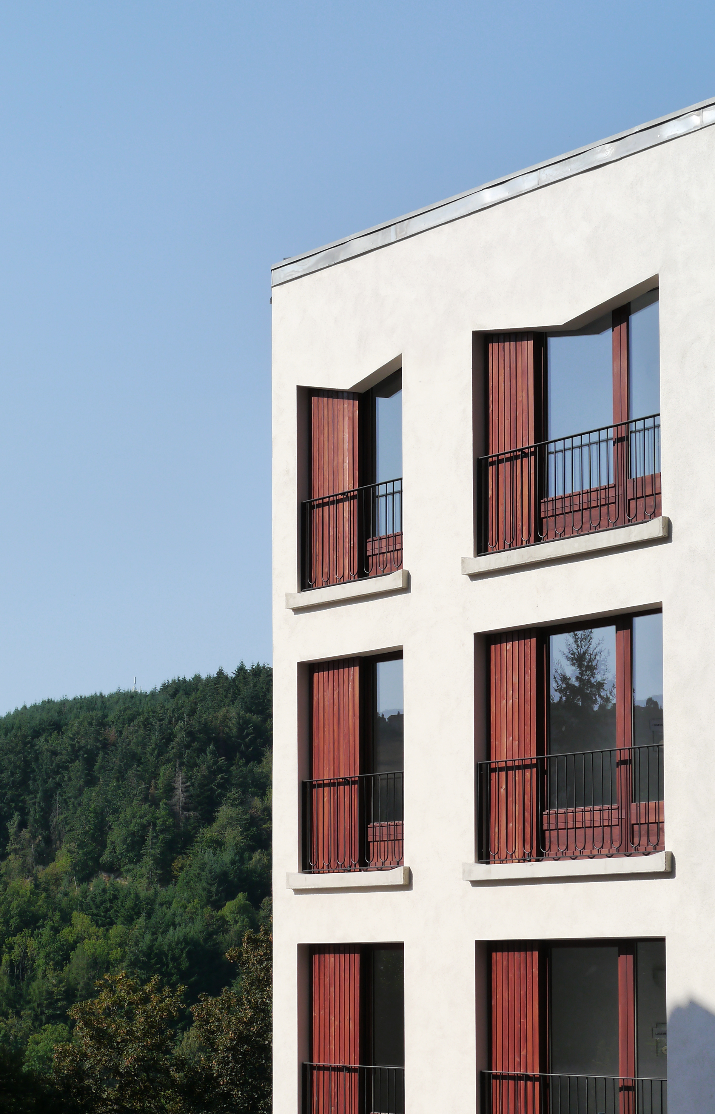 Disposant d’une maigre surface constructible disponible, le bâtiment neuf s’adosse en à l’existant. Cette implantation permet autant le confortement de la rue et de la maison existante situés en contre-haut, que la liaison entre les deux bâtiments. Le projet déploie ainsi une grande terrasse commune aux deux programmes, support de multiples activités collectives intergénérationnelles organisées par la mairie.