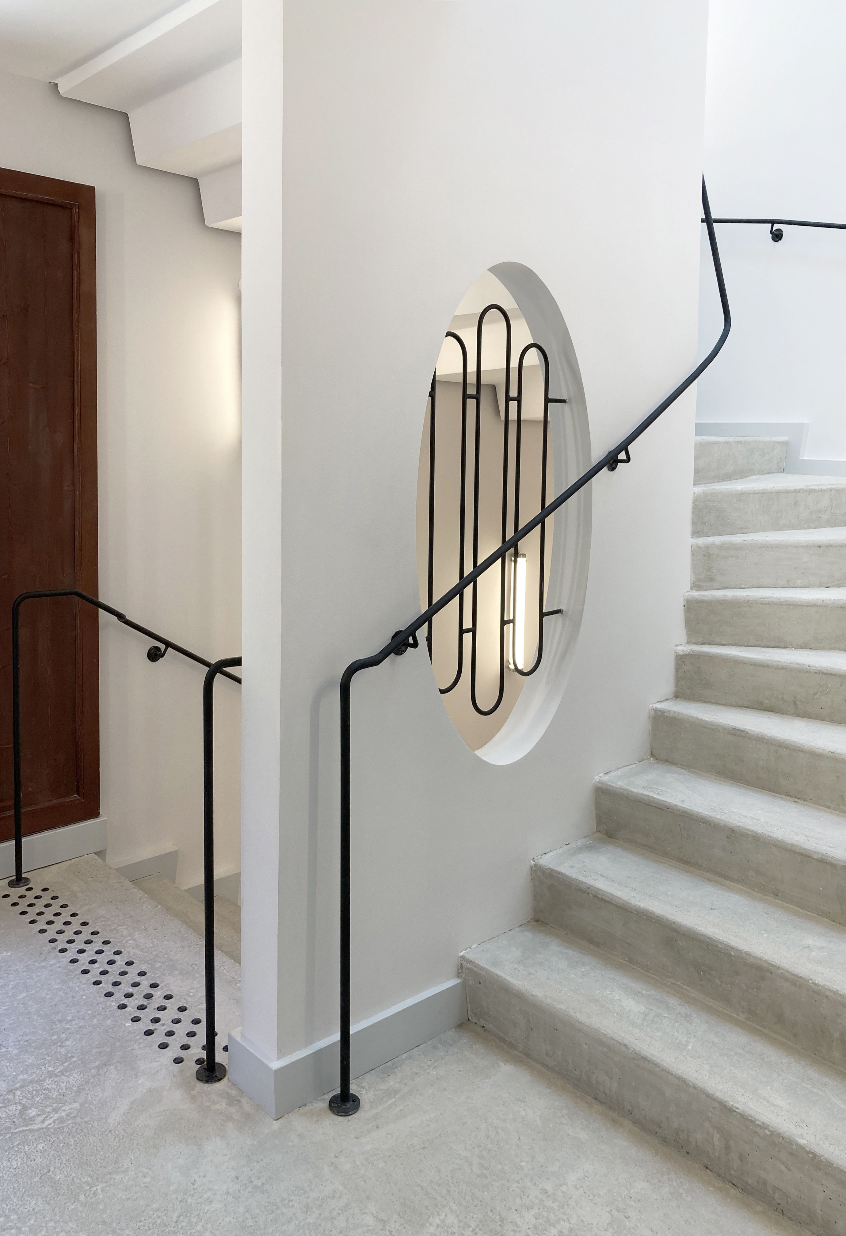 L’écriture ordinaire est assumée. Le projet reste silencieux dans le paysage, il cache sa grande dimension derrière les hauts murs du clos et à travers la végétation dense. Sa banalité est mise au service des intérieurs qu’elle accueille. Les espaces collectifs sont généreux, les matériaux sont nobles et les logements offrent des prestations à la hauteur de l’enjeu générationnel que nous rencontrons : se sentir chez soi lorsque l’on quitte la maison de toute une vie.